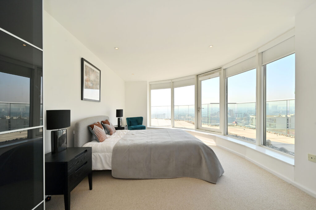 This 19th floor penthouse apartment was rented to a couple both working in finance in Canary Wharf.
