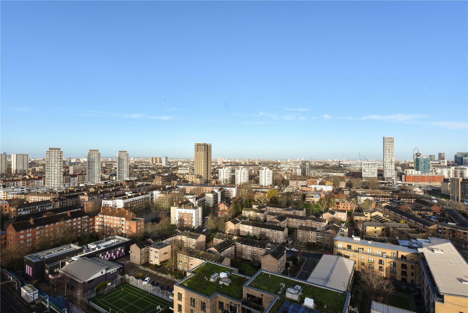 This property benefits from an open plan kitchen/reception room, wooden flooring, natural light, striking views, private balcony, passenger lift, concierge, roof terrace & gym. In addition, Marner Point offers residents easy access the amenities of Poplar, Bow Common & Canary Wharf.