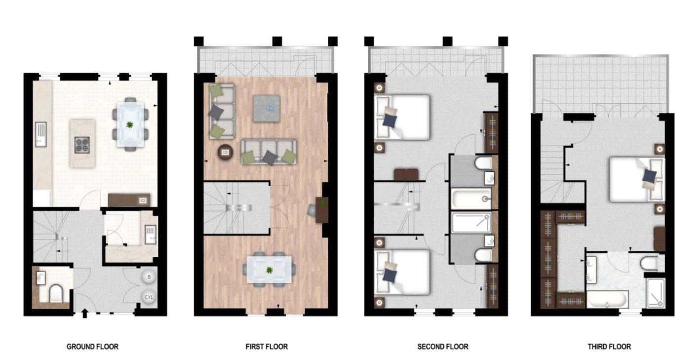 This newly built townhouse is privately gated, with a private car parking space and is arranged over four floors boasting three fabulous balconies at three different levels each one overlooking the River Thames. Further benefits include bespoke, high gloss 'Macassar' kitchen with fully integrated Miele appliances including wine cooler and a Crestron Home Automation System that controls the lighting, heating/air con and TV's throughout the property. This wonderful home is full of light and has outstanding entertaining spaces. Furthermore, Oxbridge Terrace is located close to Fulham, Hammersmith and Chelsea.