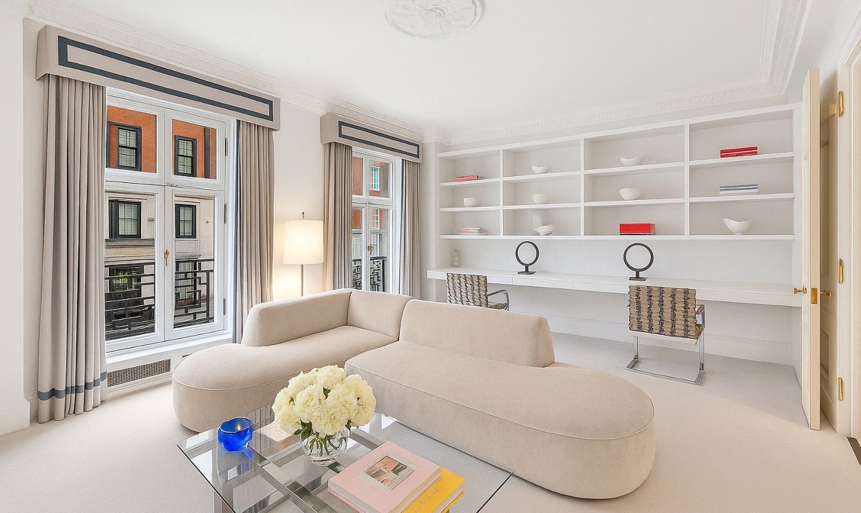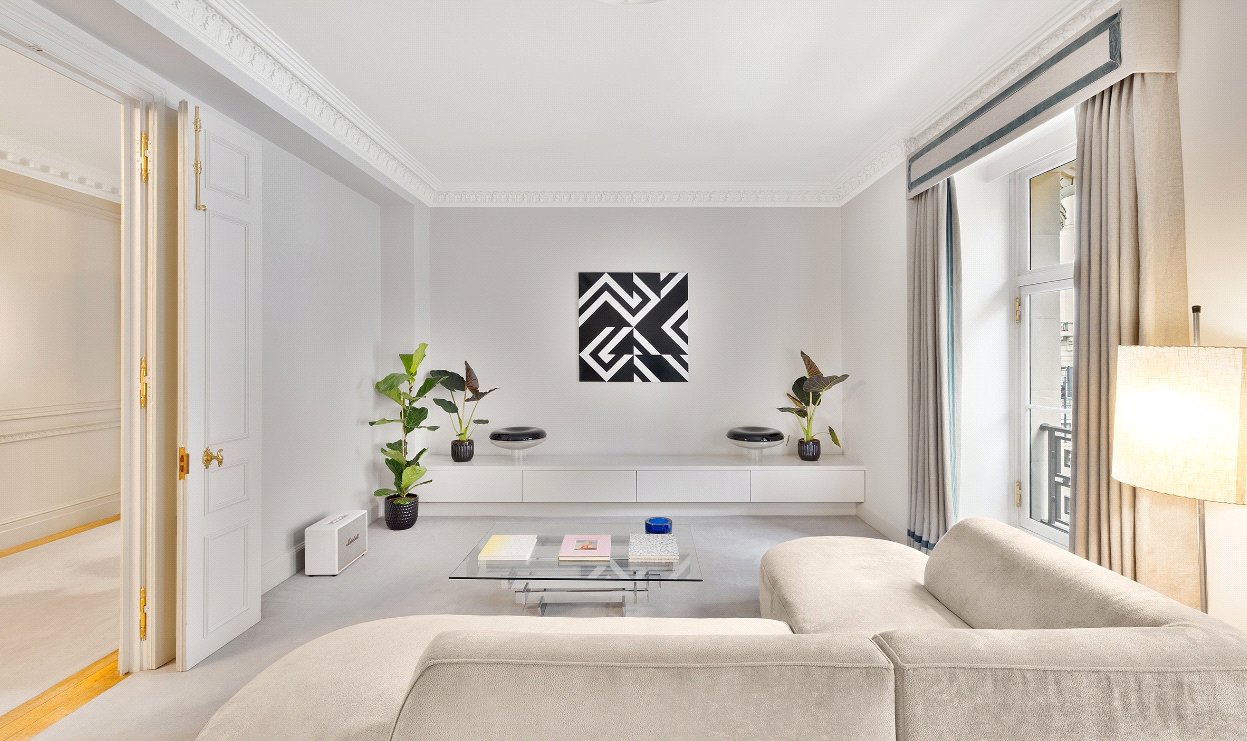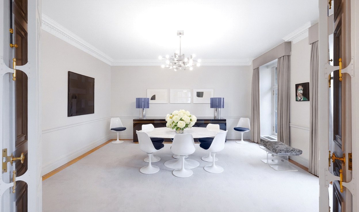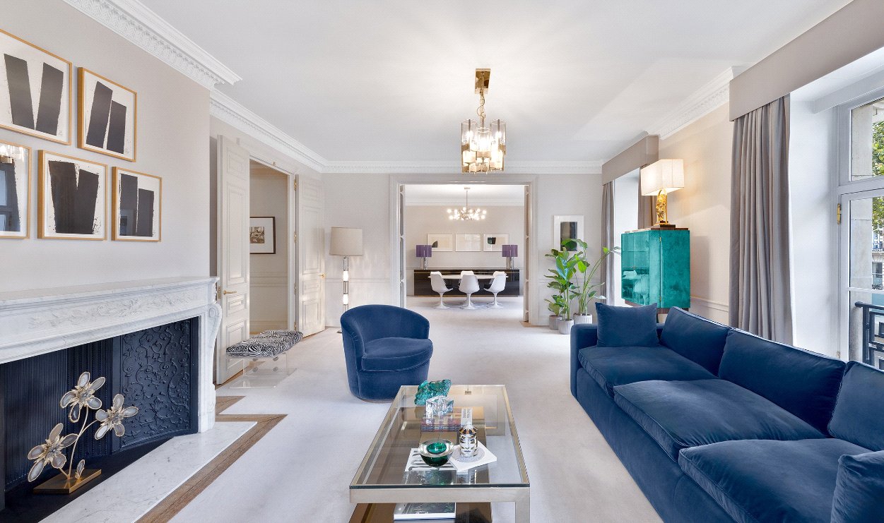 Positioned on one of central London’s most prestigious addresses, this elegant lateral apartment on Portland Place offers over 3,300 square feet of refined living. The property is beautifully proportioned, with high ceilings, sash windows, and natural light throughout. This apartment sits in a prime first-floor position, with wonderful views looking out at tree-level towards Regent’s Park. Key access is also available to tennis courts of Regent’s Park plus private gardens at Park Crescent. Residents are moments from Marylebone High Street and Bond Street.